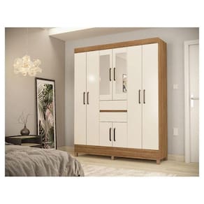 Guarda Roupa Casal Munique Amêndola Off White com Espelho – Demóbile