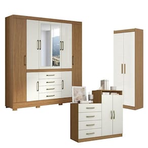 Guarda Roupa Casal Nápole 2045149 e Armário Multiuso 2000191 e Cômoda Londres Atacama Off White - Aramóveis