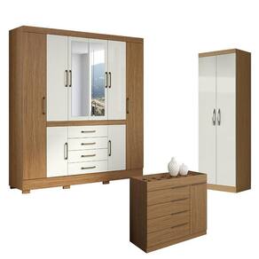 Guarda Roupa Casal Nápole 2045149 e Armário Multiuso New 2000192 Atacama Off White e Cômoda Sevilha Atacama - Aramóveis