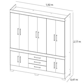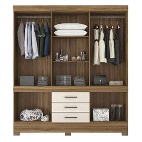 O Guarda-Roupa New Murano possui divisões e compartimento bem distribuídos oferecendo compartimentos exclusivos para vários pares de sapatos, maleiro espaçoso e prateleira. Gavetas externas com deslize perfeito e pés em PVC que facilitam a limpeza do piso ao redor do produto. Possui puxadores super elegantes na cor bronze permitindo que você personalize o seu ambiente deixando-o cada vez mais elegante.
