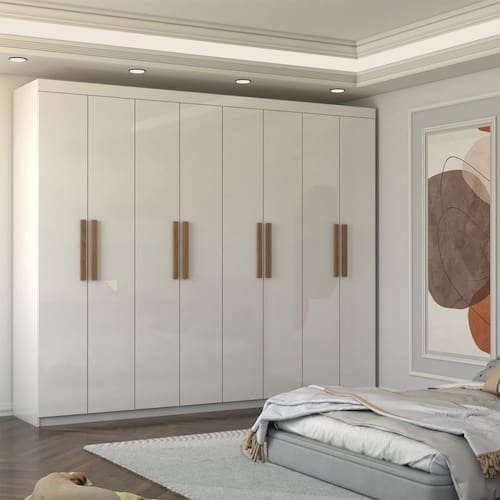 O(a) Guarda-Roupa Casal Nirvana 8 Portas 4enbsp;gavetas Branco - Loja é produzido em MDP na escala de brilho Fosco e Semi-Brilho, e possui um grau de dificuldade de montagem: Médio.