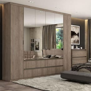 Guarda Roupa Casal Nobre 6 Portas Full Glass Rustic Acetinado - THB