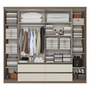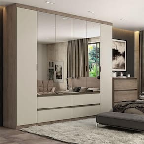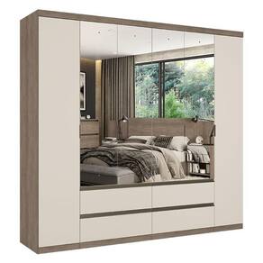 Guarda Roupa Casal Nobre 6 Portas Full Glass Rustic Off White Acetinado - THB