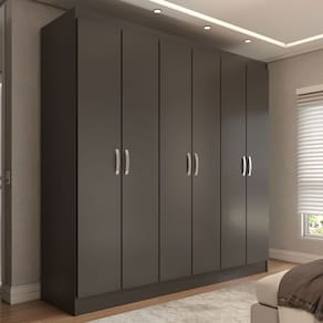 O(a) Guarda-Roupa Casal Normandia 6 Portas 2 Gavetas Black - Loja é produzido em MDP na escala de brilho Semi-Brilho, e possui um grau de dificuldade de montagem: Médio.