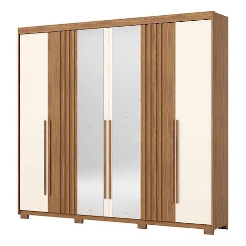 Guarda Roupa Casal Norton 6 Portas Nature Off White com Espelho - Henn