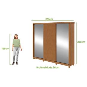 Guarda Roupa Casal Ollie 3 Portas Amêndoa Clean com Espelho Glass e Pés ? Lopas