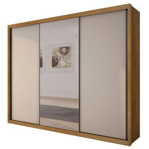 Guarda Roupa Casal Palazzo 3 Portas 6 Gavetas Cumaru 25 Fendi com Espelho – Novo Horizonte