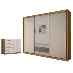 Guarda Roupa Casal Palazzo com Espelho e Cômoda Seul Cumaru 25 Fendi - Novo Horizonte