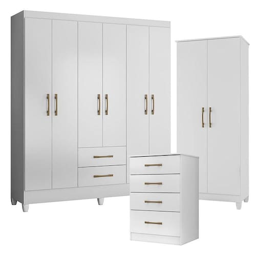 Guarda Roupa Casal Panamá com Cômoda MS913 e Armário Multiuso Jade Branco Brilho– Moval