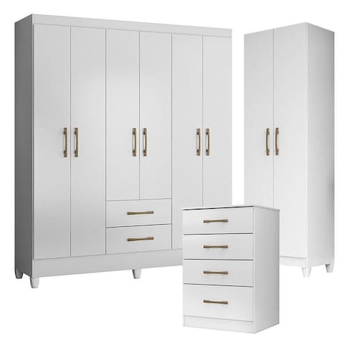 Guarda Roupa Casal Panamá com Cômoda MS913 e Armário Multiuso New Íris Branco Brilho Moval