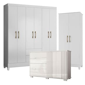 Guarda Roupa Casal Panamá com Cômoda Texas e Armário Multiuso Jade Branco Brilho Moval