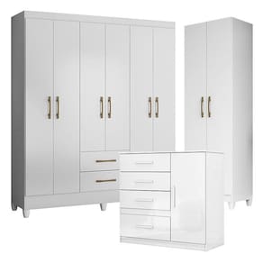 Guarda Roupa Casal Panamá com Cômoda Vênus e Armário Multiuso New Íris Branco Brilho Moval