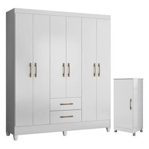Guarda Roupa Casal Panamá e Armário Multiuso Lírio Branco Brilho Moval