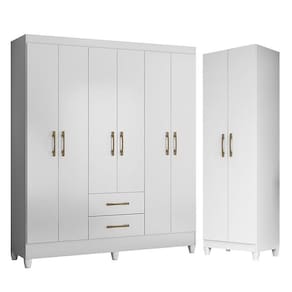 Guarda Roupa Casal Panamá e Armário Multiuso New Iris Branco Brilho - Moval