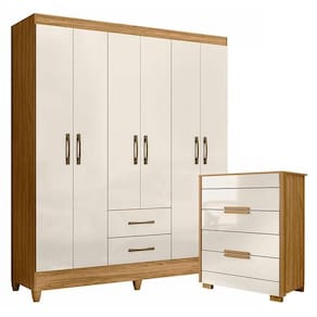 Organize seu quarto com elegância e o melhor custo beneficio do mercado. Apresentamos o Guarda Roupa Casal Panamá e Cômoda Dhara fabricados pela Moval. Guarda Roupa com 06 portas e 02 gavetas com corrediças metálicas, espaço para roupas longas, puxadores na cor bronze, cabideiro em madeira para melhor organização interna e pés em PVC. A cômoda possui 04 gavetas com corrediças telescópicas, moldura lateral de 25mm, tampo de 15mm, puxadores em MDF, pés em PVC e um design moderno que combina com qualquer decoração. Fabricado com materiais de alta qualidade que garante resistência e durabilidade ao produto. Confira mais detalhes e aproveite!