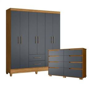 Guarda Roupa Casal Panamá e Cômoda Georgia Freijó Cinza - Moval