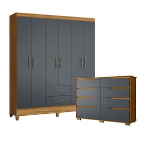 Guarda Roupa Casal Panamá e Cômoda Georgia Freijó Cinza - Moval