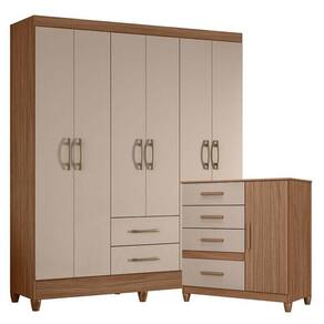 Organize seu quarto com elegância e o melhor custo beneficio do mercado. Apresentamos o Guarda Roupa Casal Panamá e Cômoda Venus fabricados pela Moval. Guarda Roupa com 06 portas e 02 gavetas com corrediças metálicas, espaço para roupas longas, puxadores na cor bronze, cabideiro em madeira para melhor organização interna e pés em PVC. A cômoda possui 04 gavetas com corrediças metálicas, 01 porta, 01 prateleira, detalhes frisados, puxadores em MDF e um design moderno que combina com qualquer decoração. Fabricado com materiais de alta qualidade que garante resistência e durabilidade ao produto. Confira mais detalhes e aproveite!