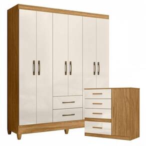 Organize seu quarto com elegância e o melhor custo beneficio do mercado. Apresentamos o Guarda Roupa Casal Panamá e Cômoda Venus fabricados pela Moval. Guarda Roupa com 06 portas e 02 gavetas com corrediças metálicas, espaço para roupas longas, puxadores na cor bronze, cabideiro em madeira para melhor organização interna e pés em PVC. A cômoda possui 04 gavetas com corrediças metálicas, 01 porta, 01 prateleira, detalhes frisados, puxadores em MDF e um design moderno que combina com qualquer decoração. Fabricado com materiais de alta qualidade que garante resistência e durabilidade ao produto. Confira mais detalhes e aproveite!