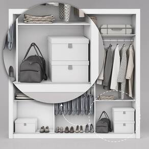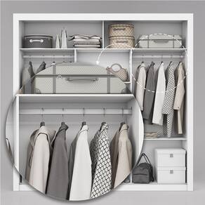 Os maleiros sao perfeitos para acomodar edredons, cobertores, travesseiros, malas e toalhas, enquanto as prateleiras sao ideais para organizar roupas de cama, itens de higiene, bolsas e acessorios. Os cabideiros sao resistentes e nao envergam com o peso de roupas mais pesadas, como sobretudos e ternos.