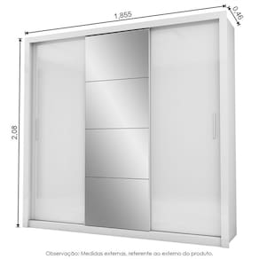 Guarda-roupa Paula com 3 portas de correr, 2,08m de altura, 1,855m de largura e 0,46m de profundidade, 4 prateleiras e 3 cabideiros, deixa o produto com uma divisão funcional capaz de proporcionar ao cliente acomodar todas as suas roupas de maneira mais organizada e com maior visibilidade. Nos maleiros cabem certinhos edredons, cobertores, travesseiros, malas, toalhas, bolsas, entre outros. Os três cabideiros, além de resistentes, não envergam com o peso dos moletons, ternos, sobretudos, camisas e acessórios. Prateleiras são ideias para colocar roupas de cama e de banho, perfumes, kits de maquiagem, caixinhas com acessórios e bolsas menores. Estrutura do produto em mdp.