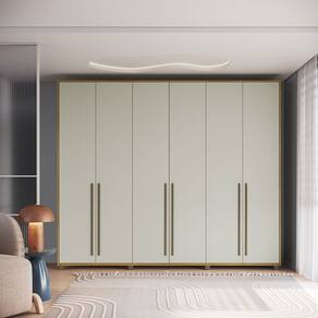 O(a) Guarda-Roupa Casal Pervoi 6 Portas 4 Gavetas Ipê/Sabbia - Decibal é produzido em MDP na escala de brilho Fosco, e possui um grau de dificuldade de montagem: Médio.