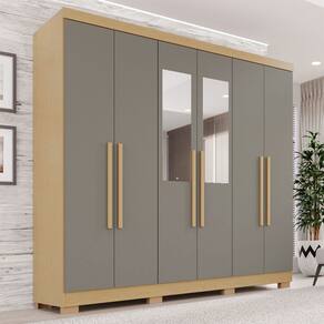 O(a) Guarda-Roupa Casal Pinheiro 6 Portas 2 Gavetas com Espelho Jequitibá/Granizo - Pnr Móveis é produzido em MDP na escala de brilho Brilho, Fosco e Semi-Brilho, e possui um grau de dificuldade de montagem: Médio.