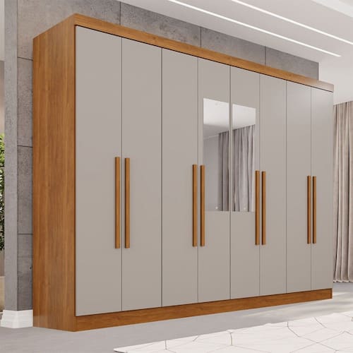 O(a) Guarda-Roupa Casal Pinheiro 8 Portas 4 Gavetas com Espelho Cinamomo/Off White - Pnr Móveis é produzido em MDP na escala de brilho Semi-Fosco, e possui um grau de dificuldade de montagem: Médio.