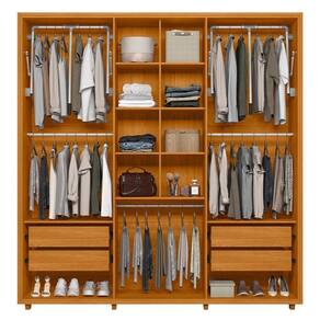 Internamente, o Portinari oferece um layout bem planejado. Os cabideiros extensíveis garantem praticidade e organização no dia a dia, facilitando o acesso às roupas e otimizando o espaço interno. As gavetas com corrediças telescópicas proporcionam abertura total e suave, ampliando a capacidade de armazenamento.