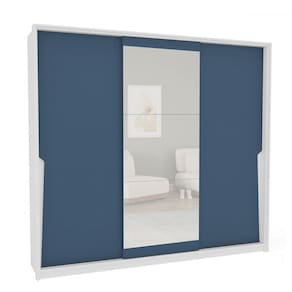 O(a) Guarda-Roupa Casal Porto 3 Portas 4 Gavetas com Espelho Branco/Azul - Politorno é produzido em MDF e MDP na escala de brilho Semi-Fosco, e possui um grau de dificuldade de montagem: Médio.