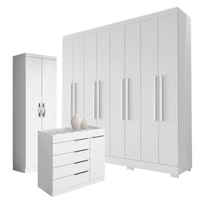 Guarda Roupa Casal Porto 8 Portas 4 Gavetas com Cômoda Sapateira Sevilha e Armário Multiuso 2 portas New Branco Brilho – Aramóveis