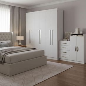 Guarda Roupa Casal Porto 8 Portas 4 Gavetas e Cômoda Sapateira Londres Branco Tx - Aramóveis