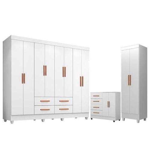 Guarda Roupa Casal Porto com Cômoda 4 Gavetas 2 Portas e Armário Multiuso Lite Branco Brilho – Leão