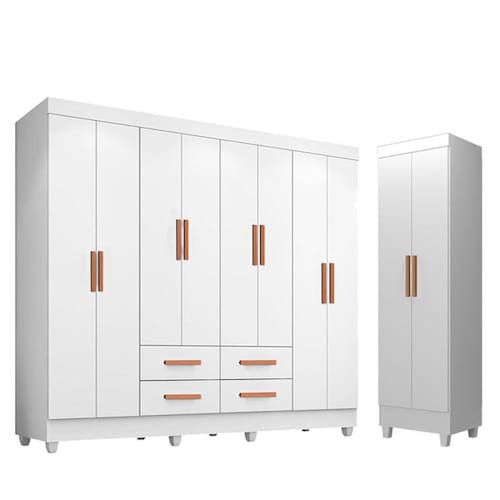 Guarda Roupa Casal Porto 8 Portas e Armário Multiuso Lite Branco Brilho – Móveis Leão