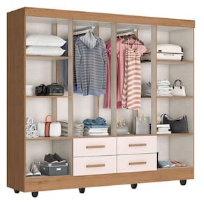 Guarda Roupa Casal Porto com Cômoda Lite 4 Gavetas 2 Portas Nature Off White – Móveis Leão