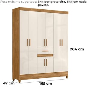 Projetado para atender às necessidades do dia a dia, o Guarda-Roupa Casal Portugal oferece espaço e modernidade. Estrutura em MDP (15/ 12 mm) e acabamento em pintura UV. Composto por portas com dobradiças metálicas, cabideiro interno (alumínio), prateleiras e gavetas com corrediças metálicas. Produto com dupla opção de montagem: pés em PVC ou sapatas plásticas (2 mm) conforme preferência do cliente. Este produto será entregue em 02 volumes.