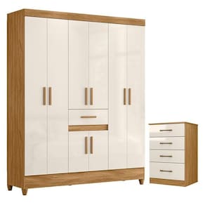 Guarda Roupa Casal Portugal e Cômoda MS913 Freijó Off White Moval