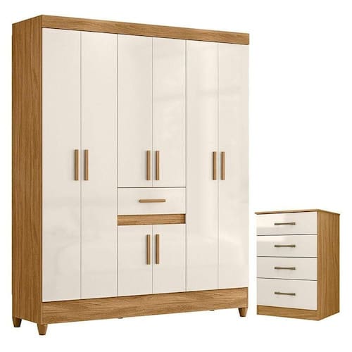 Organize seu quarto com elegância e o melhor custo benefício do mercado. Apresentamos o Guarda Roupa Casal Portugal e Cômoda MS913 fabricados pela Moval. Guarda Roupa possui 08 portas, 01 gaveta com corrediças metálicas, puxadores em MDF, cabideiros em alumínio para melhor organização interna e pés em PVC. A cômoda possui 04 gavetas sendo a última maior com corrediças metálicas e puxadores na cor bronze. Fabricado com materiais de alta qualidade que garante resistência e durabilidade ao produto. Confira mais detalhes e aproveite!