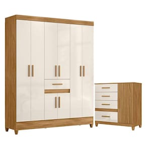 Organize seu quarto com elegância e o melhor custo benefício do mercado. Apresentamos o Guarda Roupa Casal Portugal e Cômoda Vênus fabricados pela Moval. Guarda Roupa possui 08 portas, 01 gaveta com corrediças metálicas, puxadores em MDF, cabideiros em alumínio para melhor organização interna e pés em PVC. A cômoda possui 04 gavetas com corrediças metálicas, 01 porta com detalhes frisados, pés em PVC e puxadores em MDF. Fabricado com materiais de alta qualidade que garante resistência e durabilidade ao produto. Confira mais detalhes e aproveite!