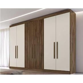 Guarda Roupa Casal Potente 6 Portas C/ 4 Ripados E 6 Gavetas Braúna/off White - Europa