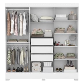 O Guarda-Roupa Prático possui uma estrutura compacta, puxadores que acompanham as cores do produto e neutralidade para compor em diferentes estilos de dormitórios. Distribuição interna completa, com gavetas que acompanham corrediças metálicas, prateleiras amplas e cabideiros. O Guarda-Roupa Prático conta com um excelente design que proporcionará ao seu quarto um estilo único.