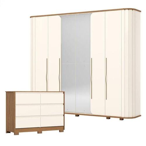 Guarda Roupa Casal Premium e Cômoda Ravenna Ambiente Nature Off White - Henn