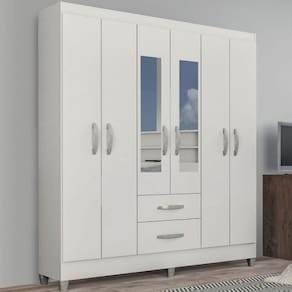 Guarda-Roupa Casal Real 6 Portas 2 Gavetas com Espelho Atualle Moveis