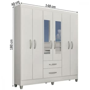 Guarda-roupa Casal Real 6 Portas 2 Gavetas Espelho Atualle Branco Brilho