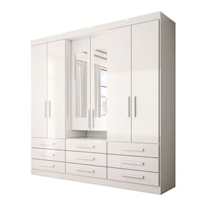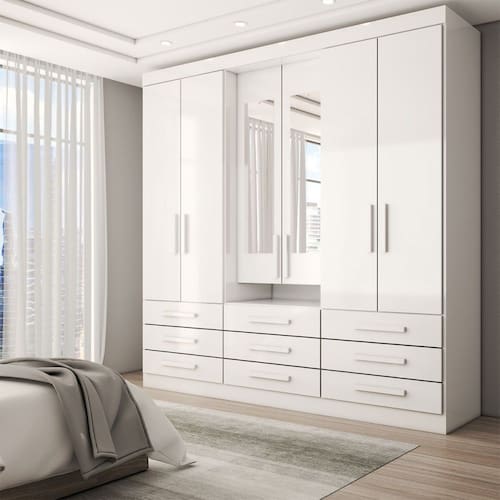 O(a) Guarda-Roupa Casal Real 6 Portas 9 Gavetas com Espelho 100% Mdf Branco - Loja é produzido em 100% MDF na escala de brilho Brilhante e Semi-Brilho, e possui um grau de dificuldade de montagem: Médio.