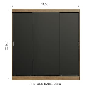 Medidas totais do guarda-roupa: 205 cm de altura x 180 cm de largura x 54 cm de profundidade.