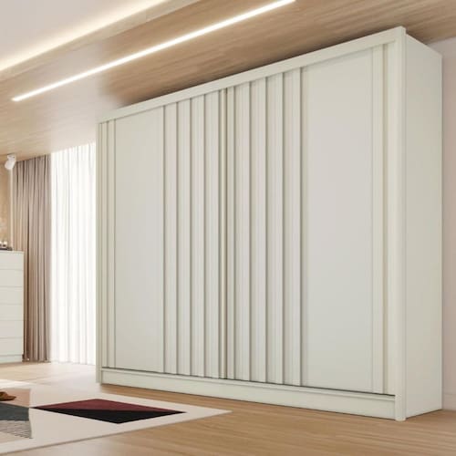 Guarda Roupa Casal Ripado 2 Portas de Correr Galati Made Marcs - Branco