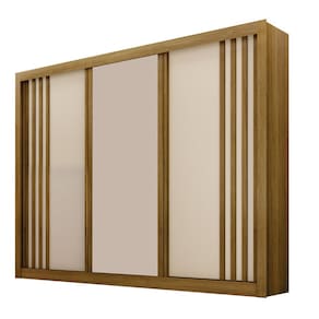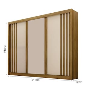 Guarda Roupa Casal Ripado 3 Portas de Correr Em MDF Milano Leifer - Bege Médio