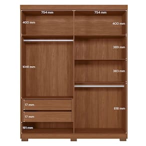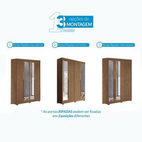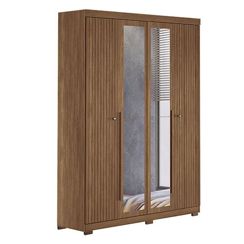 Guarda Roupa Casal Ripado 4 portas Buriti Jatobá com espelho e pés Acetinado - Santos Andirá