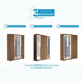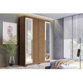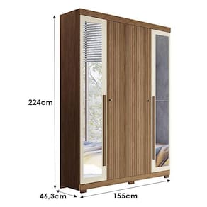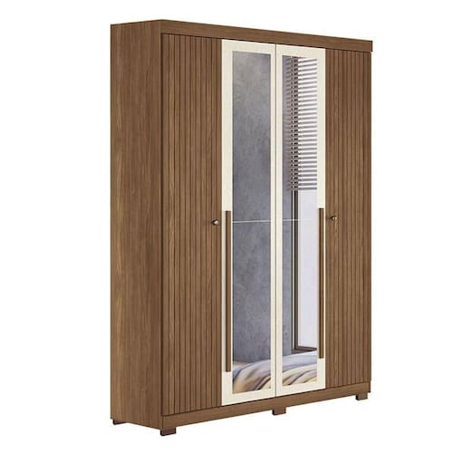 Guarda Roupa Casal Ripado 4 portas Buriti Jatobá Areia com espelho e pés Acetinado - Santos Andirá